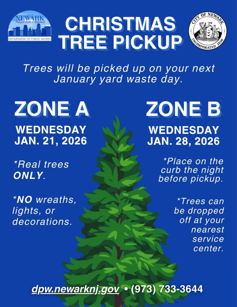 January is officially Christmas Tree pickup season! Newark DPW will collect Christmas Trees on January 2026 yard waste days.