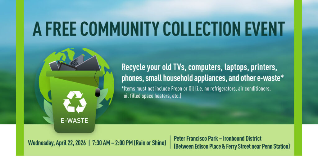 Recycle Your E-Waste! FREE Electronic Recycling Event on Wednesday, April 22, 2026, 7:30 am to 2 pm at Peter Francisco Park in the Ironbound, RAIN OR SHINE